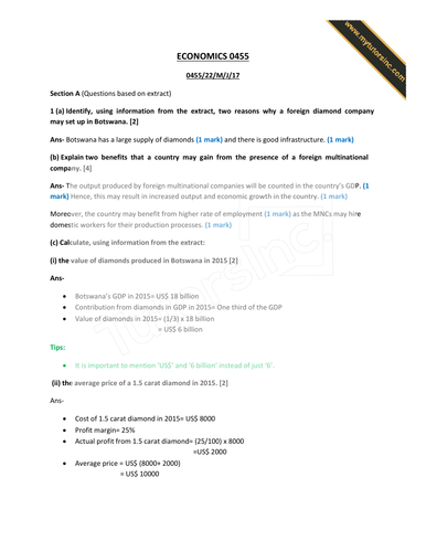 Cambridge Igcse Economics Paper 2 May June 2017 Solved Question Paper Teaching Resources